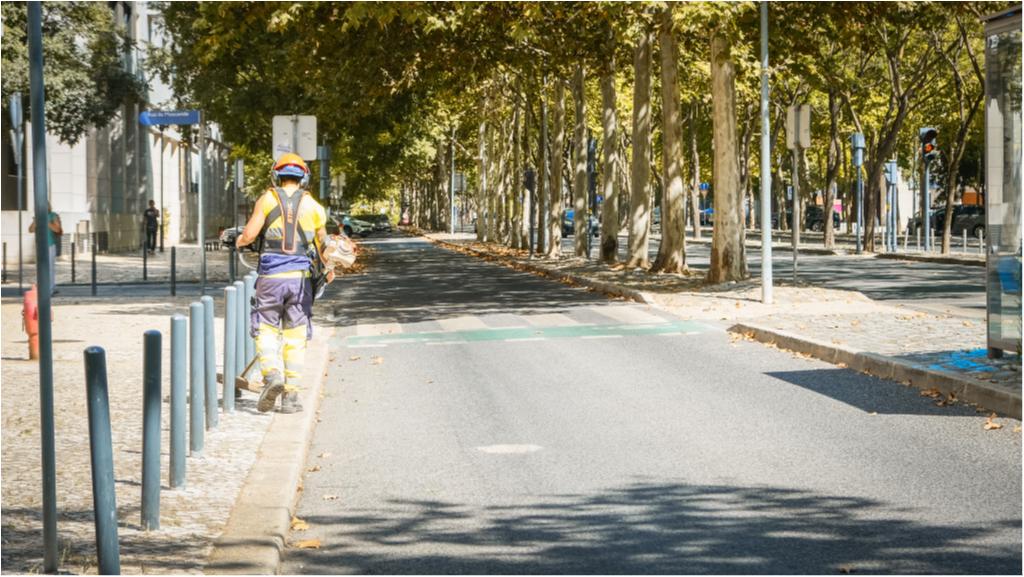 As equipas de Gestão Urbana e Ambiente da JFPN procedem hoje a operações de deservagem e aspiração de folhagens secas, com recurso a varredora mecânica, na Alameda dos Oceanos, na zona norte do Parque das Nações.
