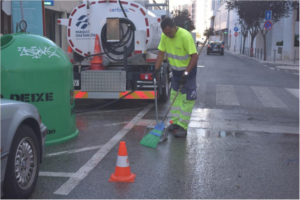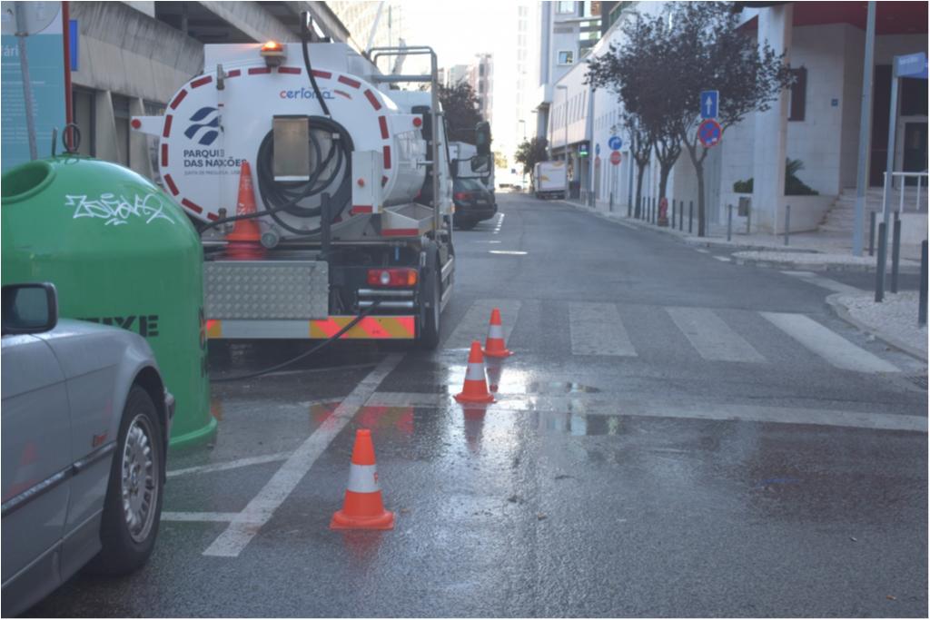 Destacamos hoje a lavagem e desinfeção dos passeios, recantos e vidrões no Passeio do Cantábrico e Rua do Caribe, junto à Praça Central da Estação do Oriente, que está a ser feita com o auxílio do camião lava-ruas da JFPN.