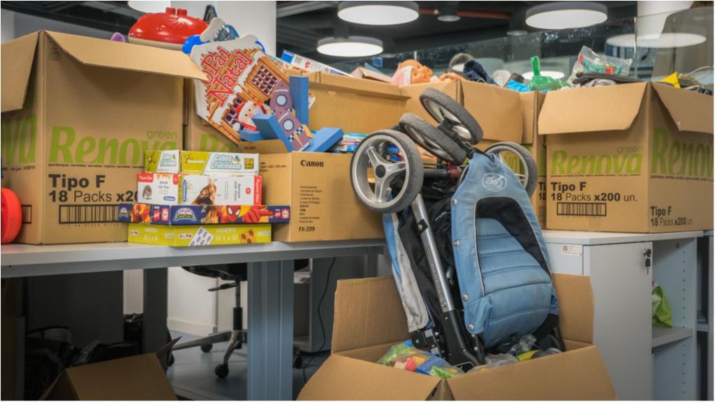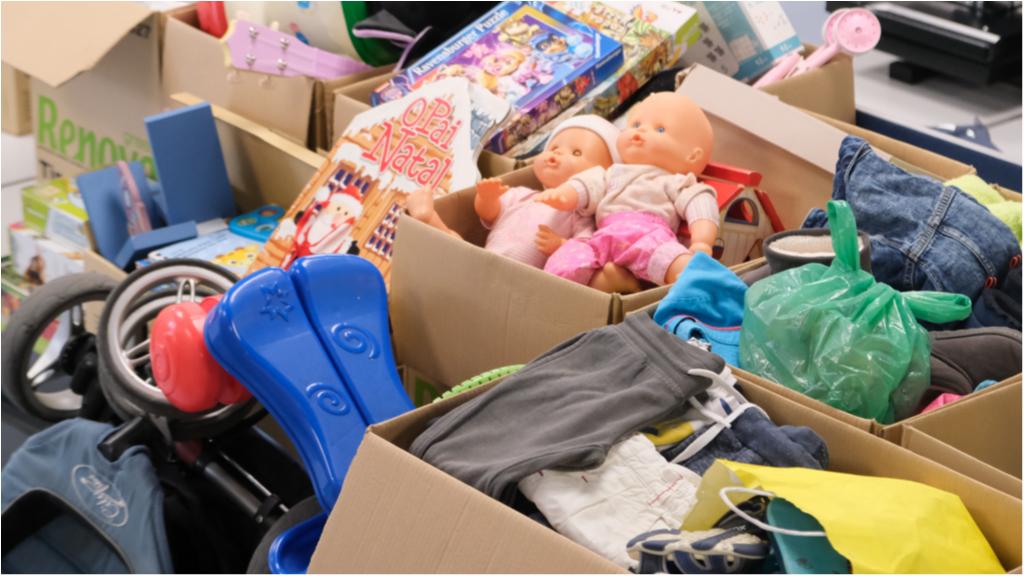 No desafio do mês de dezembro, foi pedida a doação de brinquedos, jogos e roupa de criança em bom estado, para ser entregue na Loja Solidária.