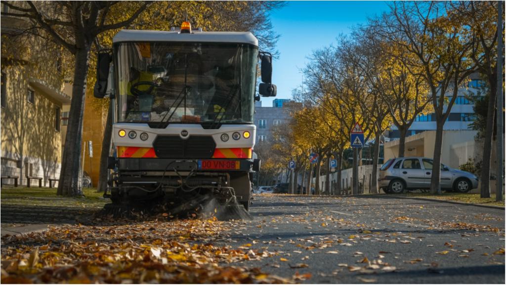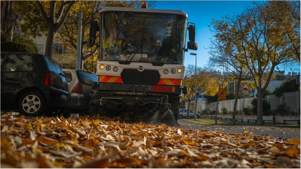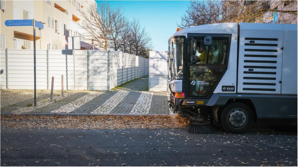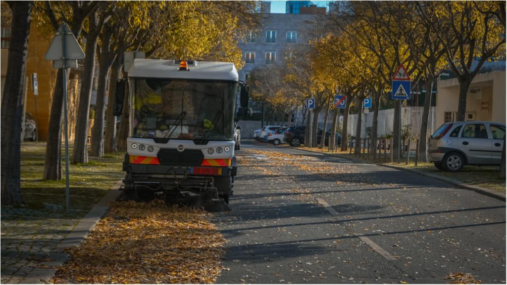 Hoje destacamos as operações de aspiração de folhas e limpeza urbana, com auxilio de varredora, que estão a ser executadas na Rua Ilha dos Amores.