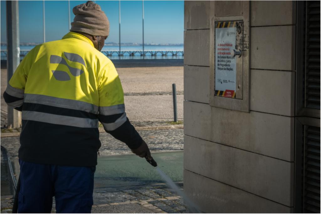 Lavagem de espaços junto ao Pavilhão de Portugal