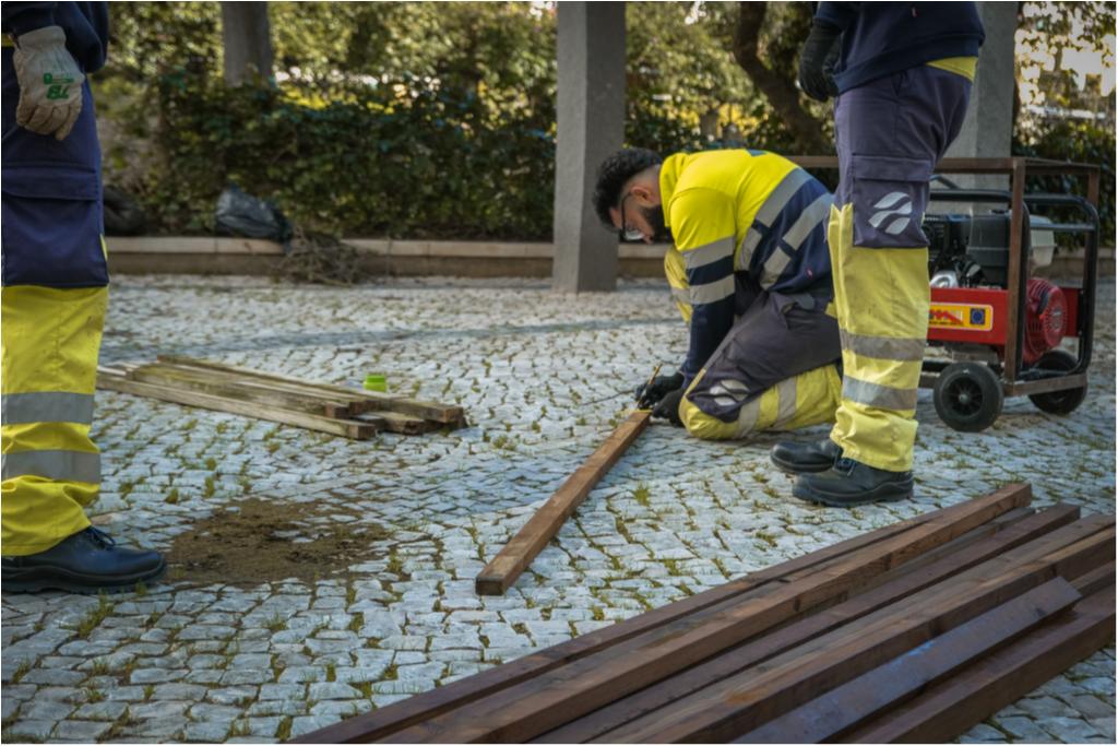 A Unidade de Espaço Público da JFPN está a renovar hoje as madeiras da pérgula existente no Passeio dos Jacarandás. As traves de madeira foram reabilitadas pelos operacionais no estaleiro da Junta de Freguesia.