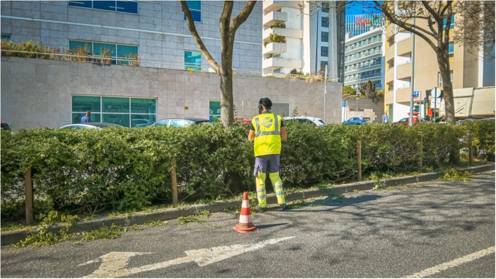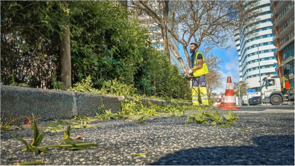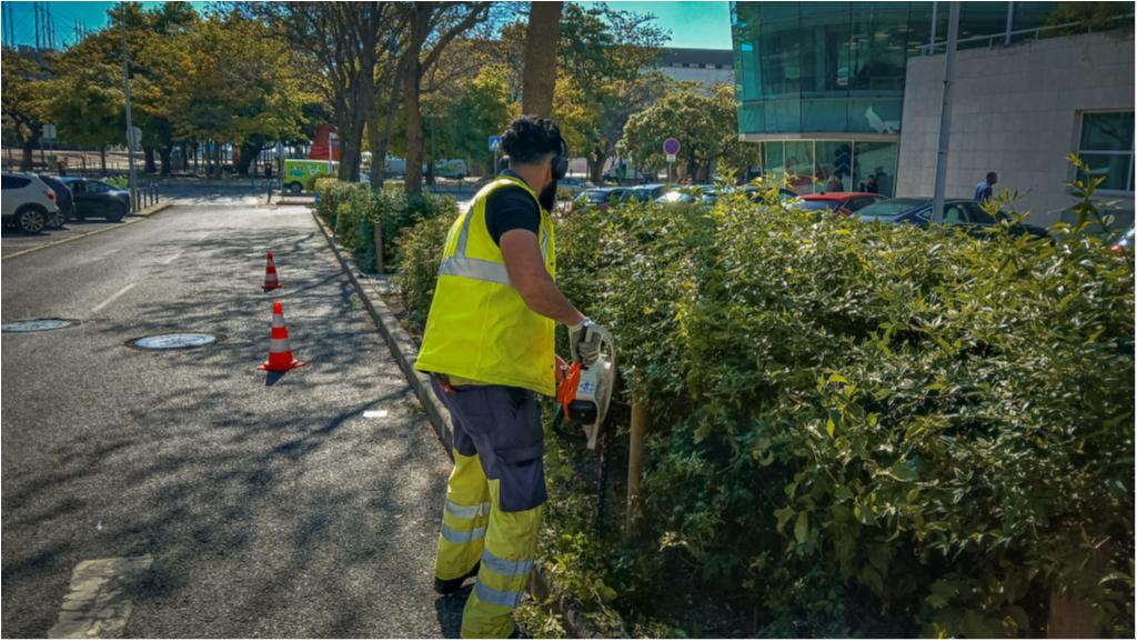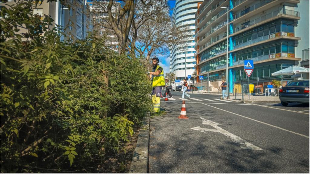 Hoje destacamos trabalhos de poda de arbustos que estão a ser feitos na Avenida do Mediterrâneo.