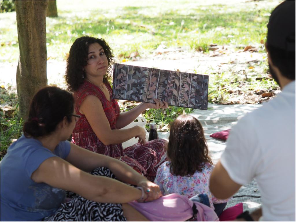 A segunda sessão foi dedicada às famílias e crianças dos quatro aos 10 anos e nela se fez uma roda de contos, cantos e histórias.