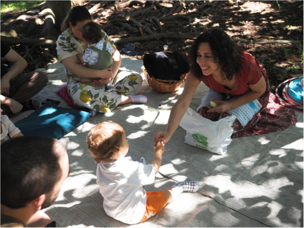 A primeira sessão, dedicada a bebés, fomentou uma exploração livre de materiais, e do livro enquanto objeto, assim como a convivência entre os participantes.