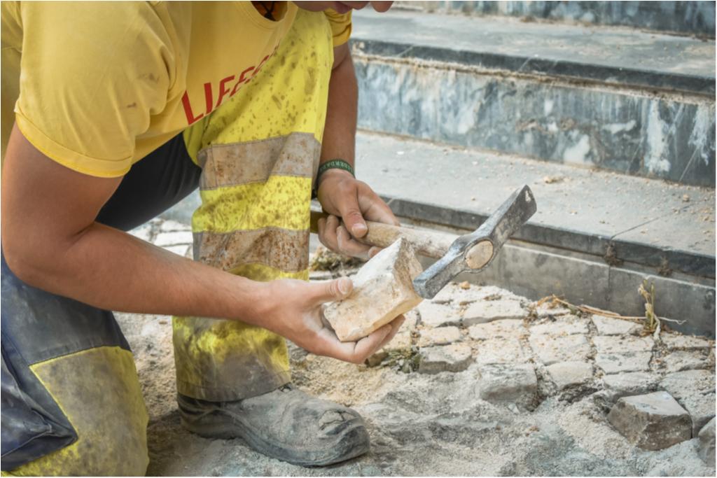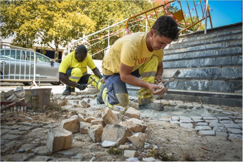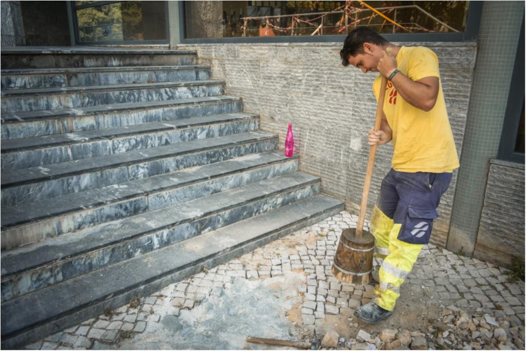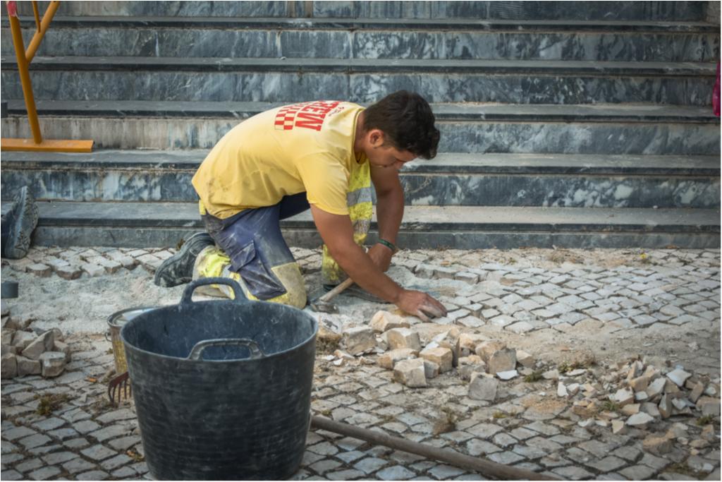 Hoje destacamos o calcetamento de um passeio, após um abatimento, que está a ser efetuado na Rua Ilha dos Amores, junto à esquadra da PSP.