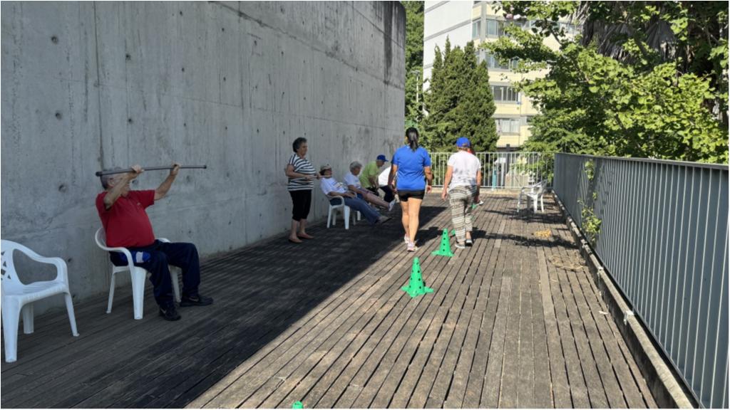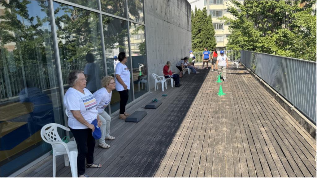 Esta manhã fomos espreitar uma das aulas de ginástica, na Piscina do Oriente, do programa da JFPN “Parque Saudável”, para maiores de 55 anos.