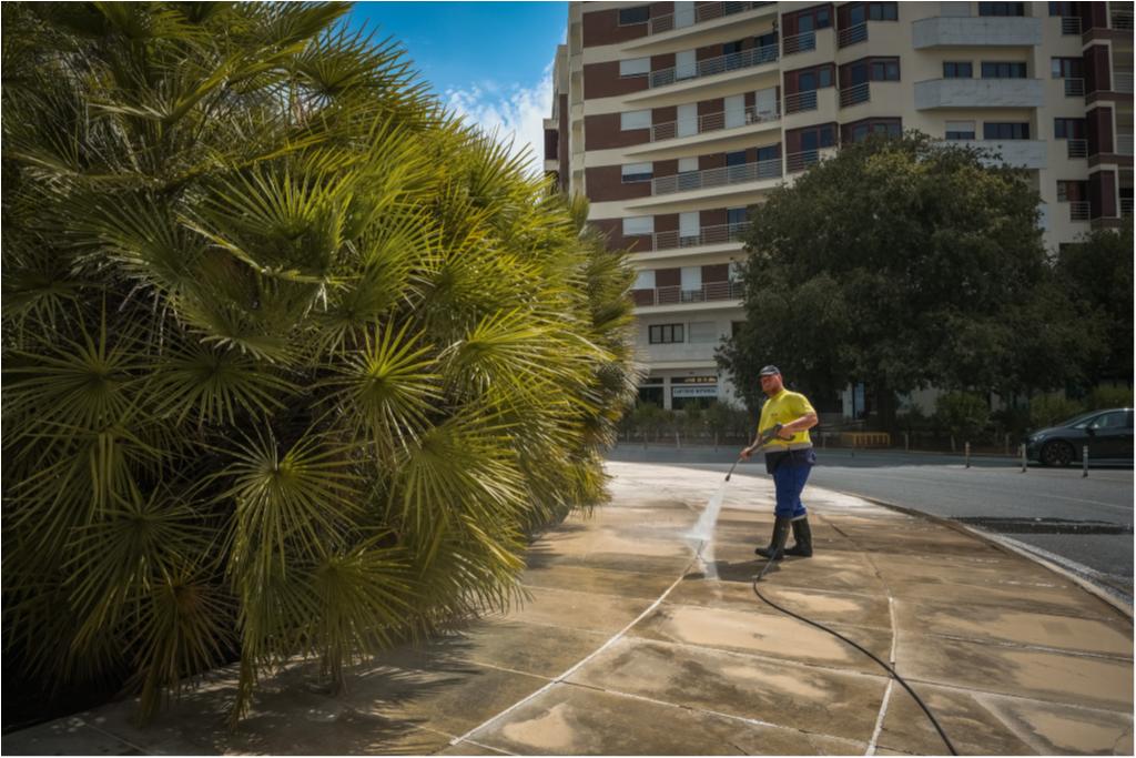 Hoje destacamos a limpeza com recurso a mangueira de jato de água na Rotunda das Oliveiras, na Rua Ilha dos Amores, e de operações de limpeza e deservagem na Avenida D. João II, junto ao IPDJ.