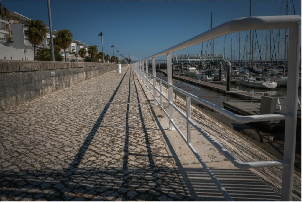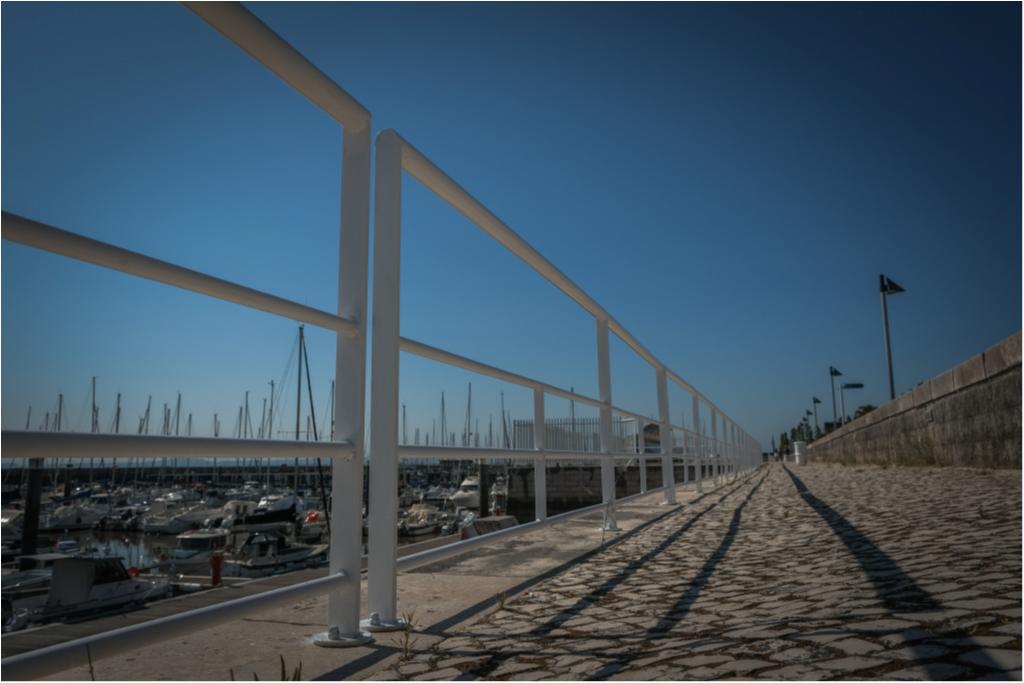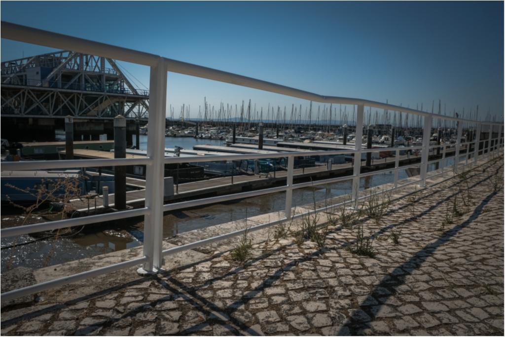 Cerca de três quilómetros foram intervencionados, desde a Torre Vasco da Gama até à entrada da Marina do Parque das Nações, com a eliminação de pontos de ferrugem e substituição de partes metálicas degradadas, lixagem e pintura.
