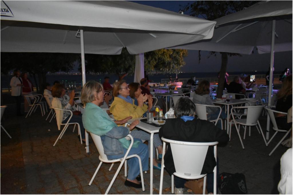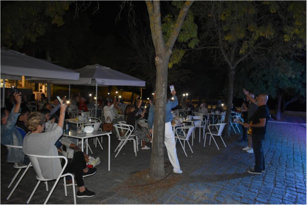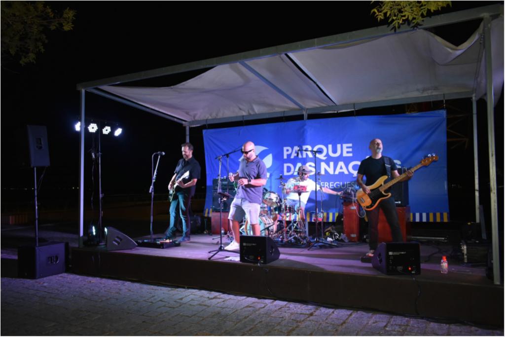 No fabuloso cenário à beira Tejo, junto ao Café Esplanando, a banda 'Backup' fez reviver alguns dos temas emblemáticos das décadas de 70 e 80, para delícia das dezenas de pessoas que assistiram, muitas das quais não resistiram a um pezinho de dança.
