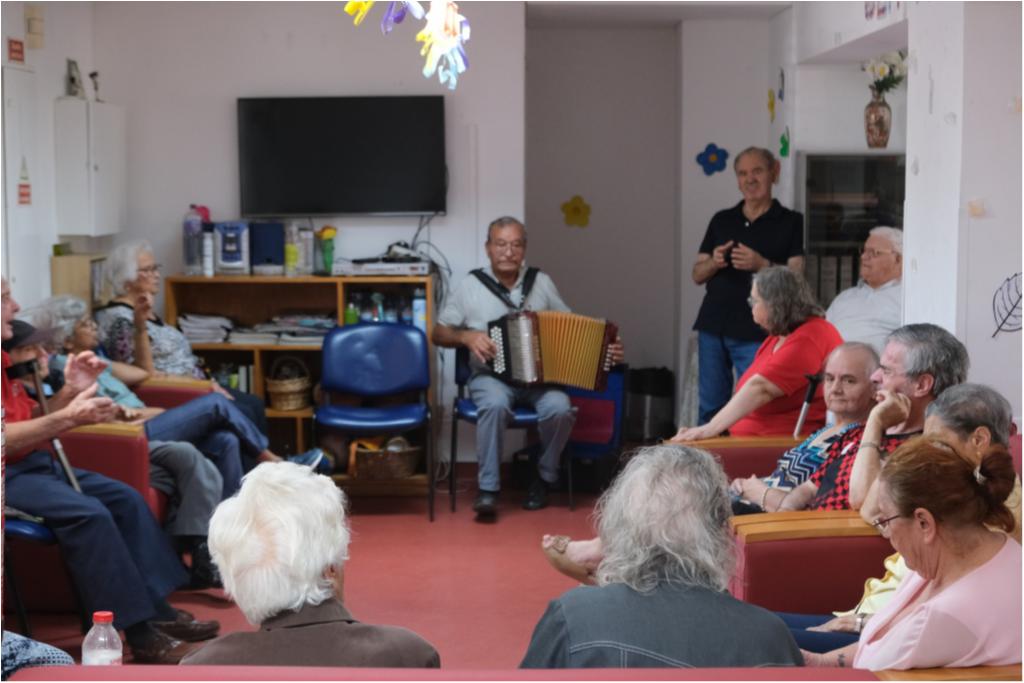 Hoje, 7 de outubro, foi dia de celebração com os seniores do Centro de Dia, que receberam o senhor Ramiro Gonçalves, também ele freguês do Parque das Nações, que, com o seu acordeão, sempre nos habituou a bons momentos de música e bailarico.