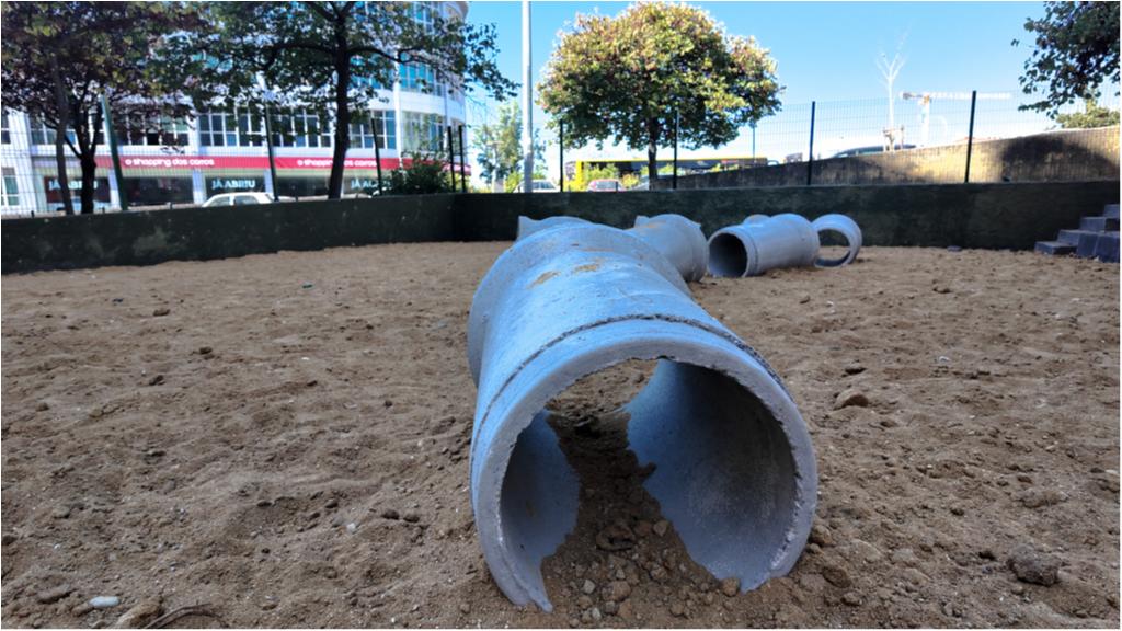O equipamento foi construído no local onde estava o antigo parque infantil ,que a JFPN deslocalizou por razões de segurança para junto do Largo Cálderon Dinis.