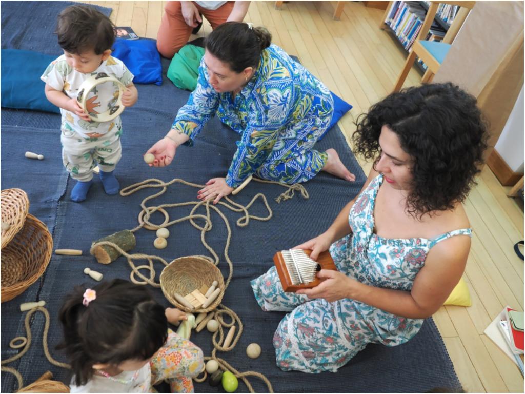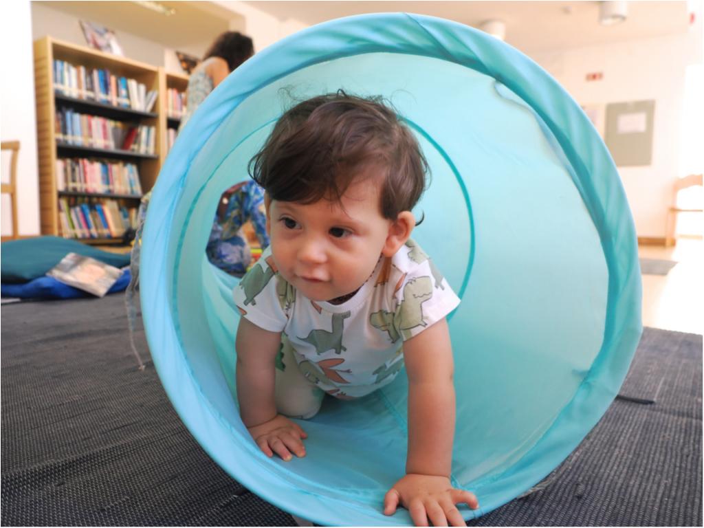 Ana Sofia Nunes animou mais uma sessão para bebés até aos três anos, que tiveram oportunidade de explorar diversos materiais na companhia de outros bebés e de um adulto acompanhante.