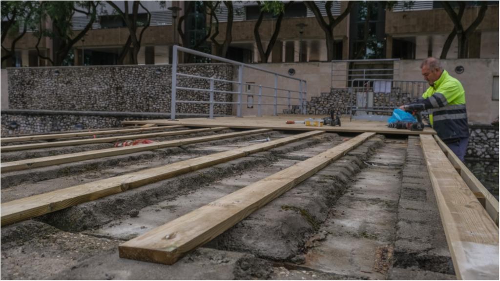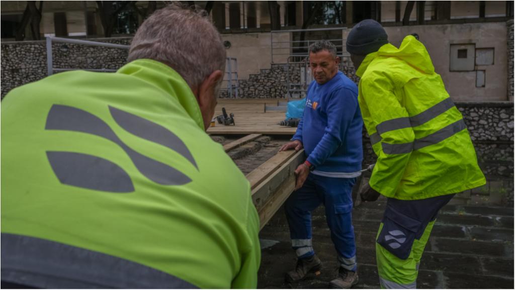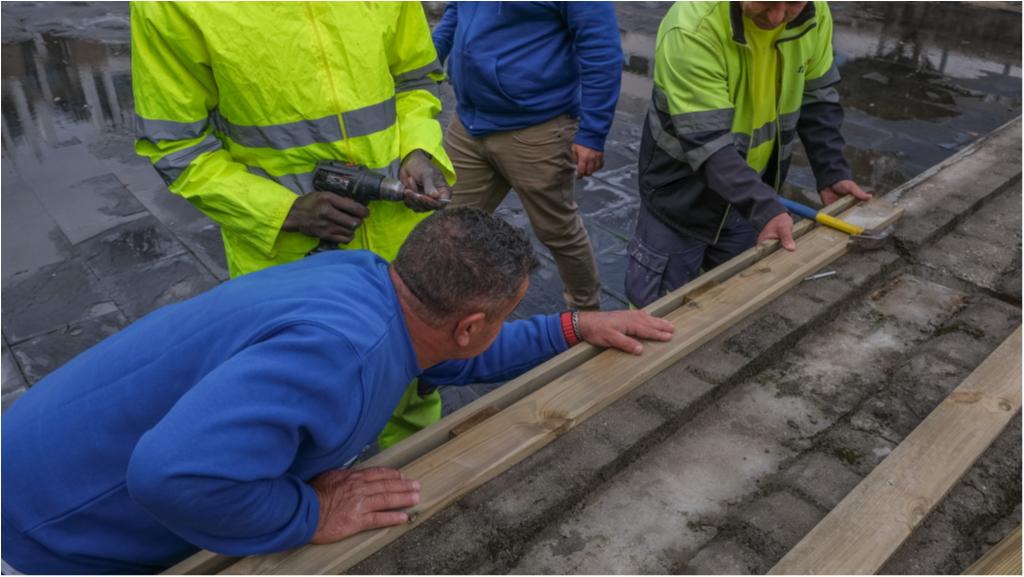 Estão em curso os trabalhos de substituição do deck de madeira no Cais do Olival.