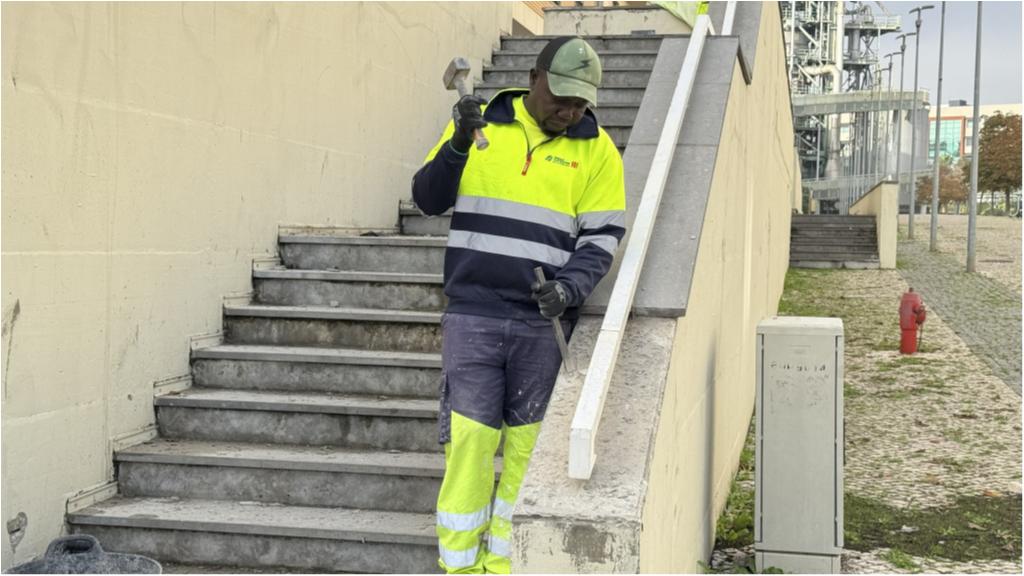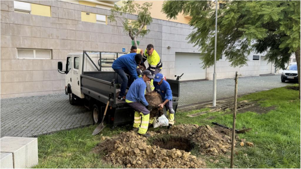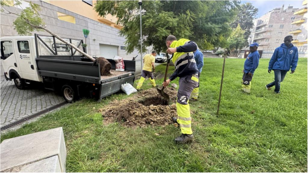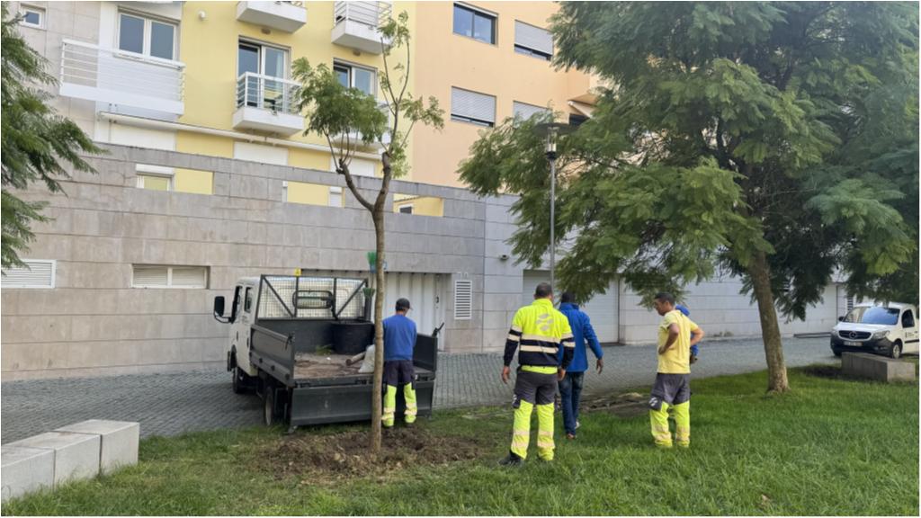 Hoje destacamos os trabalhos de plantação de uma árvore de jardim na Rua dos Cruzados e a fixação da pedra de um muro no Passeio do Adamastor, ambos na zona sul.