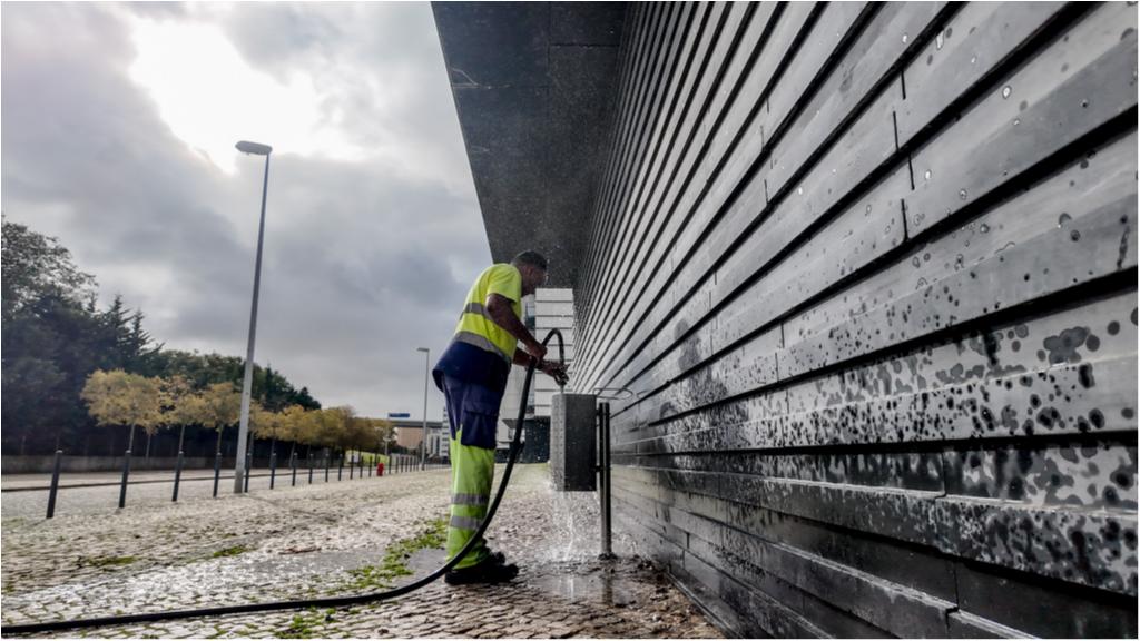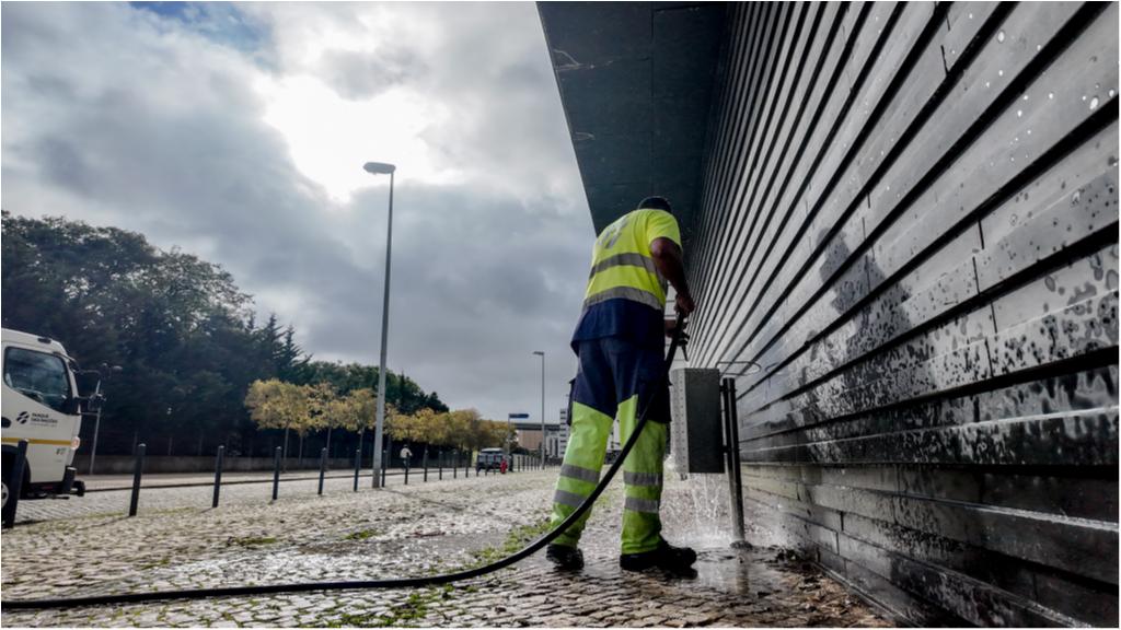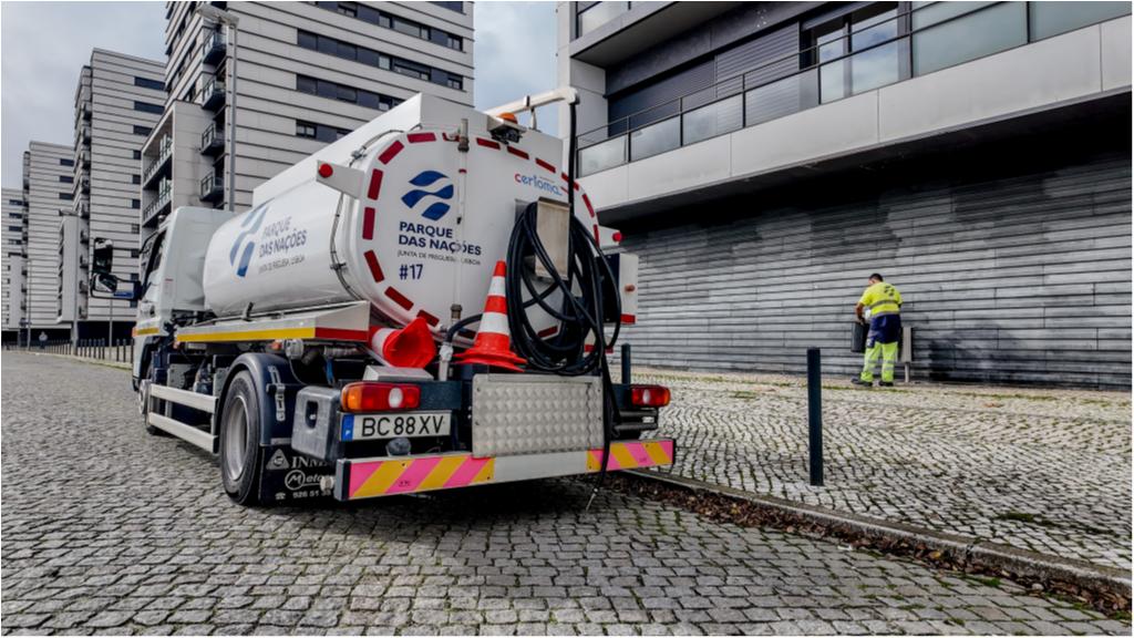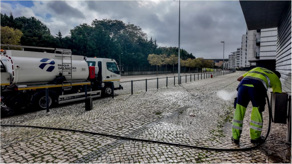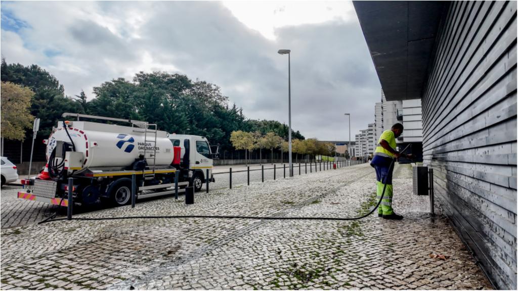 Hoje destacamos a lavagem de papeleiras no Passeio dos Heróis do Mar, na zona norte da freguesia, com recurso ao camião lava-ruas da JFPN.