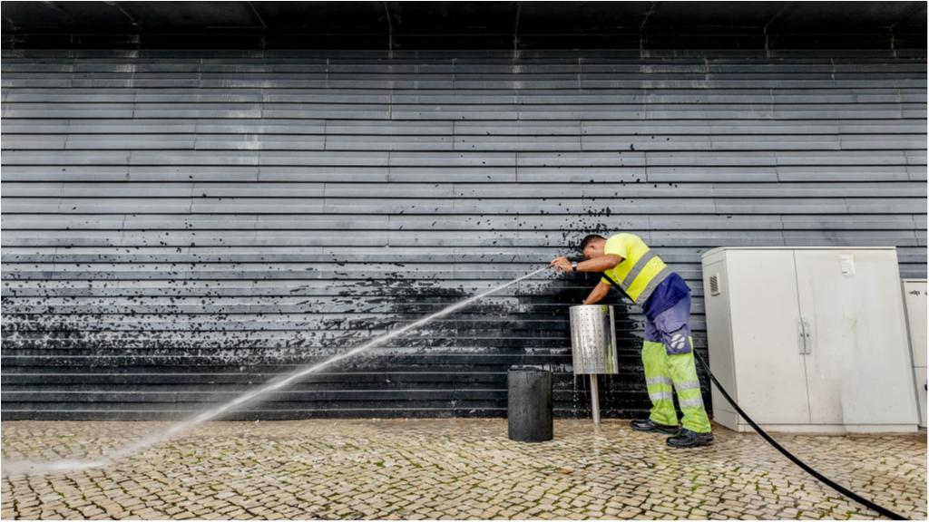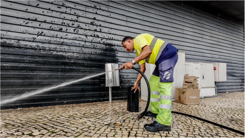 Lavagem de papeleiras no Passeio dos Heróis do Mar