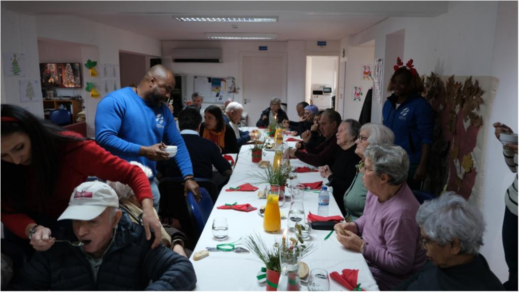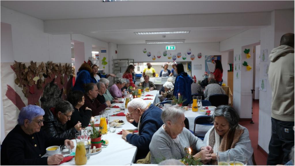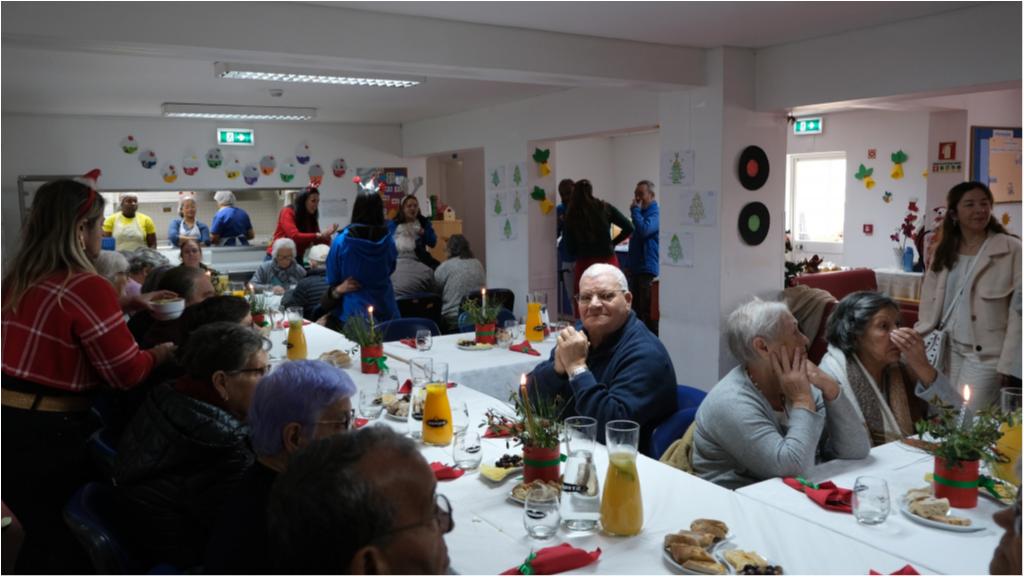 Os seniores do Centro de Dia do Parque das Nações tiveram hoje, dia 19 de dezembro, o tradicional almoço de Natal, com direito às iguarias da época, onde não poderia faltar o fiel bacalhau e as sobremesas festivas.