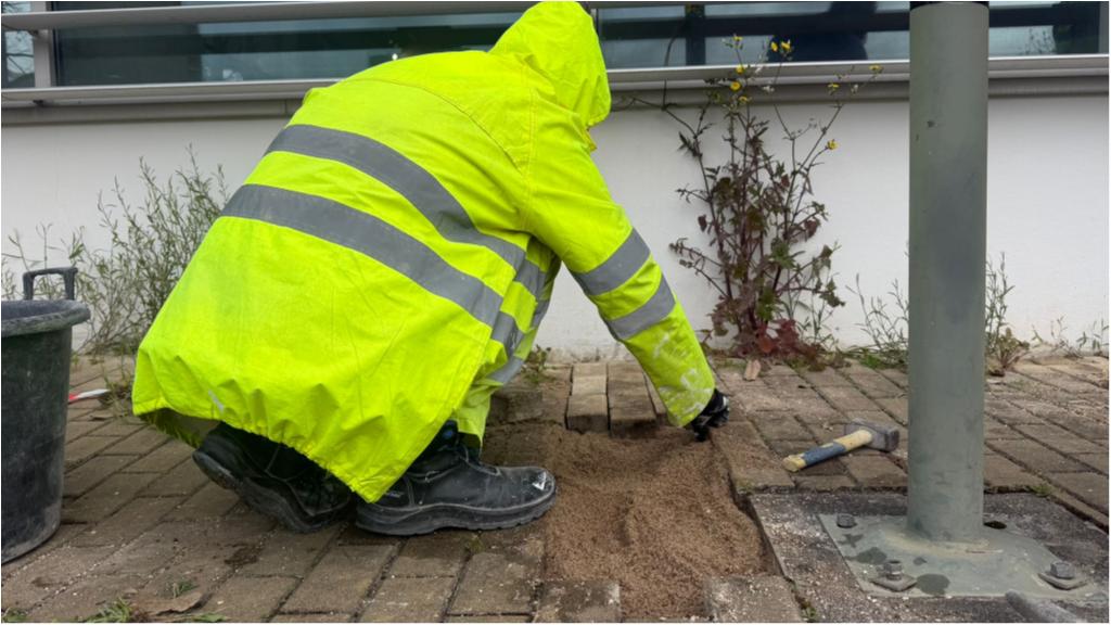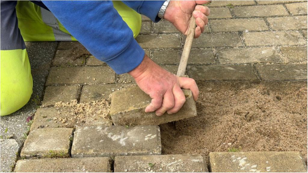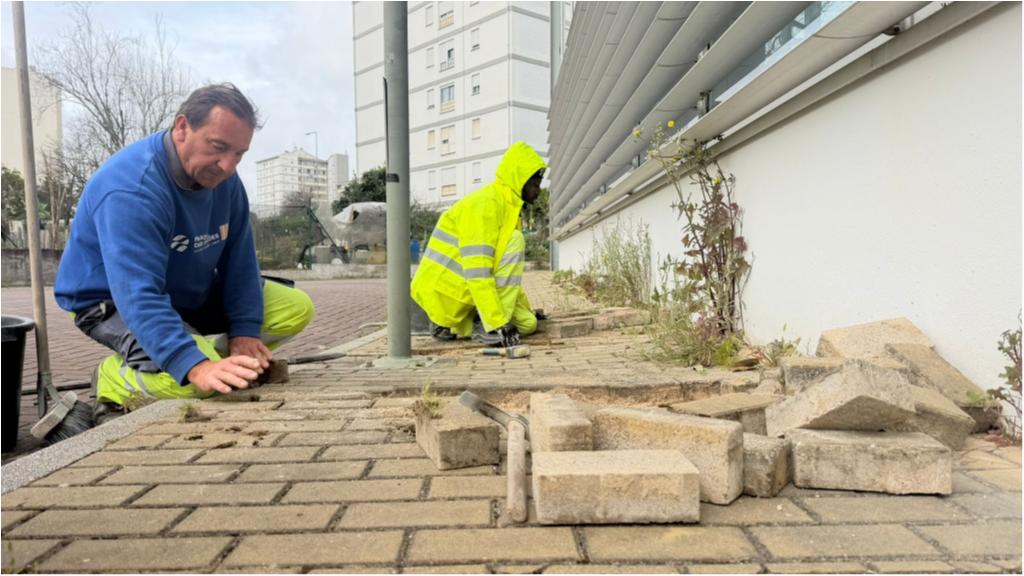 Hoje destacamos os trabalhos de recuperação e manutenção do pavê (pavimento do passeio) no exterior da Piscina do Oriente.