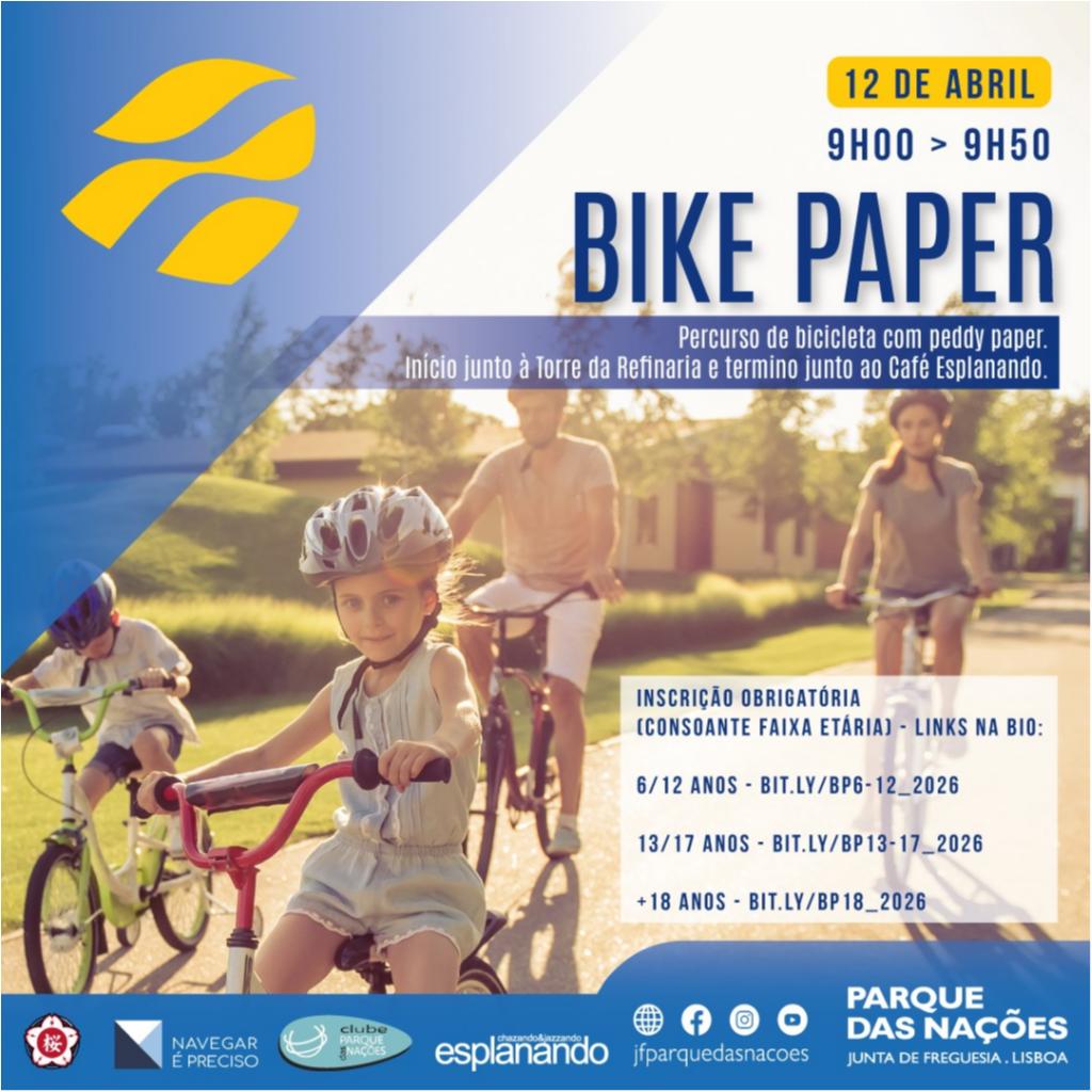 ???? O Bike Paper terá início junto à Torre da Refinaria e terminará no relvado do Passeio dos Heróis de Mar, entre o café Esplanando e a Casa do Arboreto. Para participar é obrigatório saber andar de bicicleta e inscrever-se consoante a faixa etária: