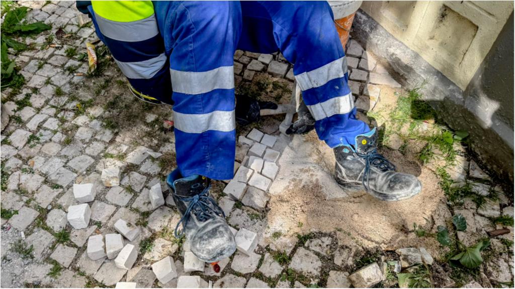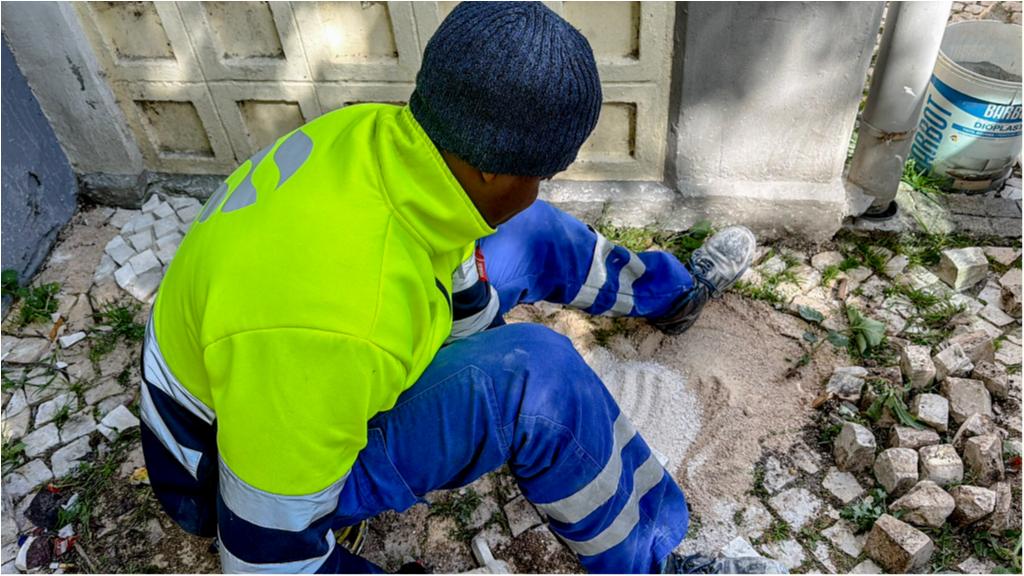 Hoje destacamos o calcetamento da calçada portuguesa que está a ser efetuado na Rua Manuel Mendes, na Quinta das Laranjeiras.