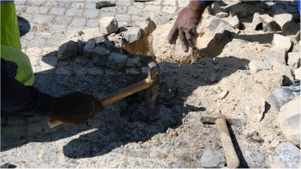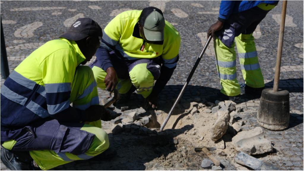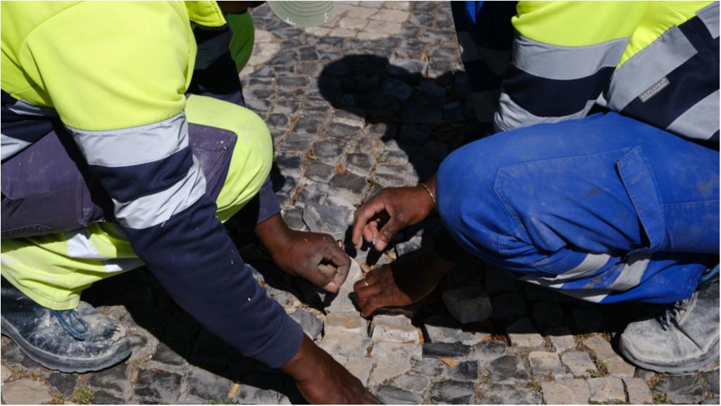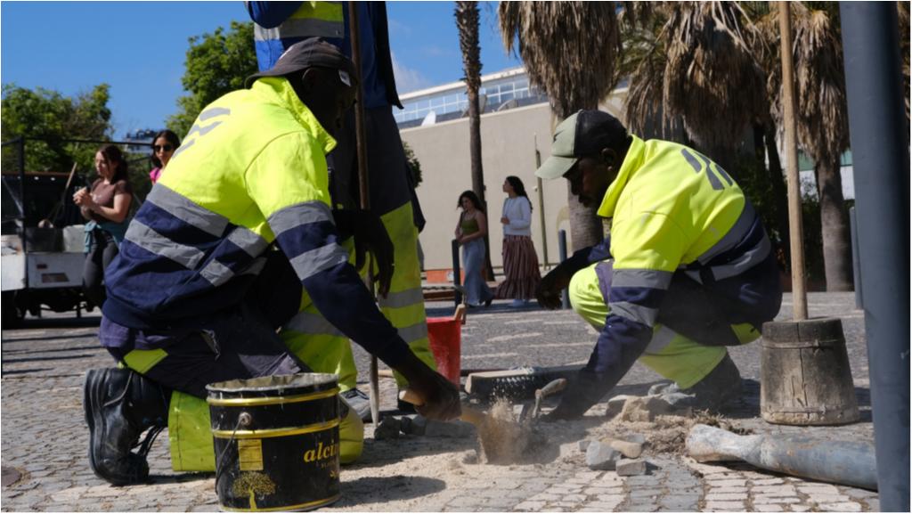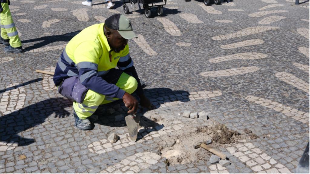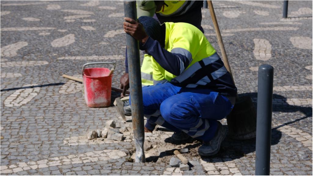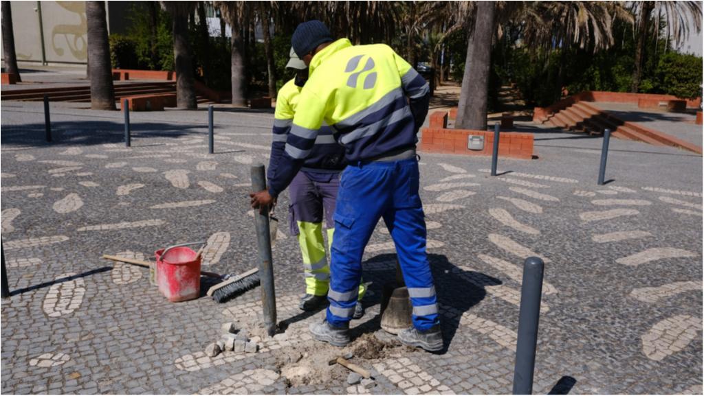 Hoje destacamos trabalhos de manutenção da calçada e de pilaretes, no Passeio de Ulisses.