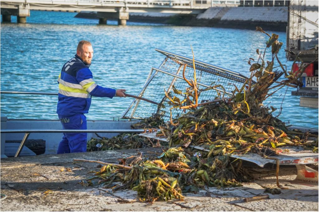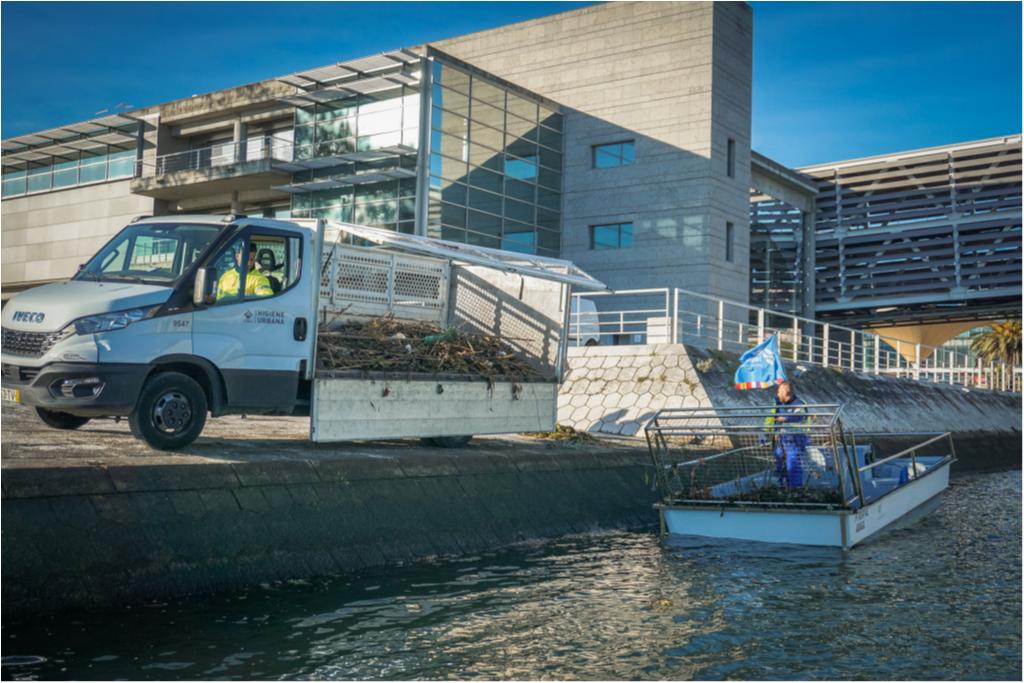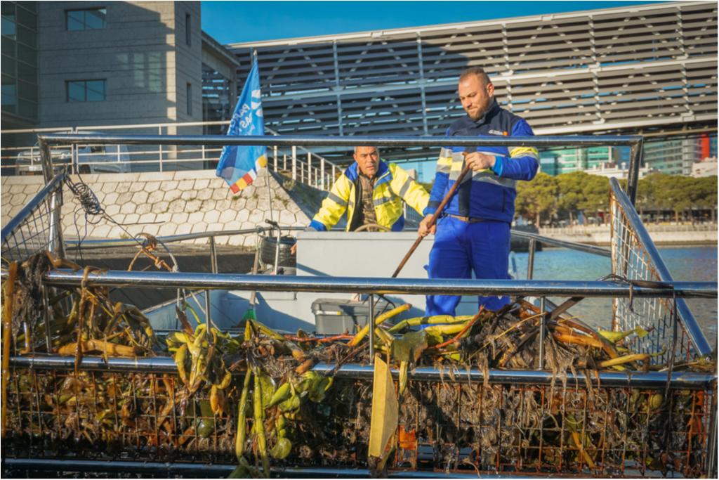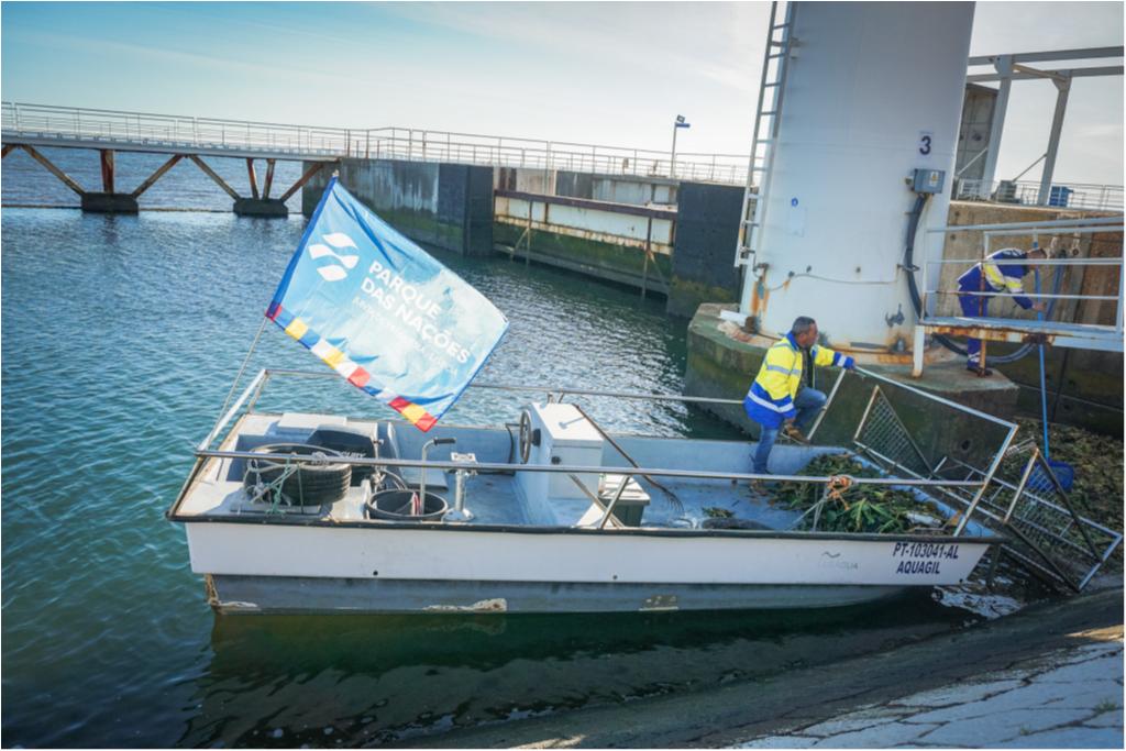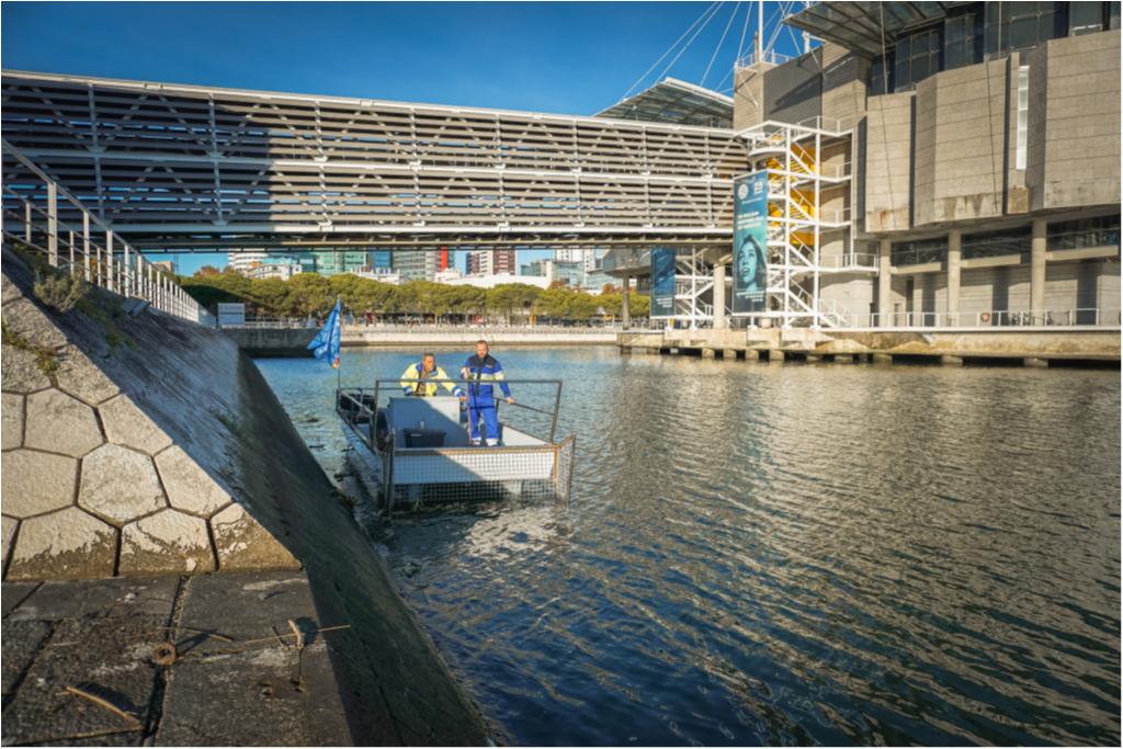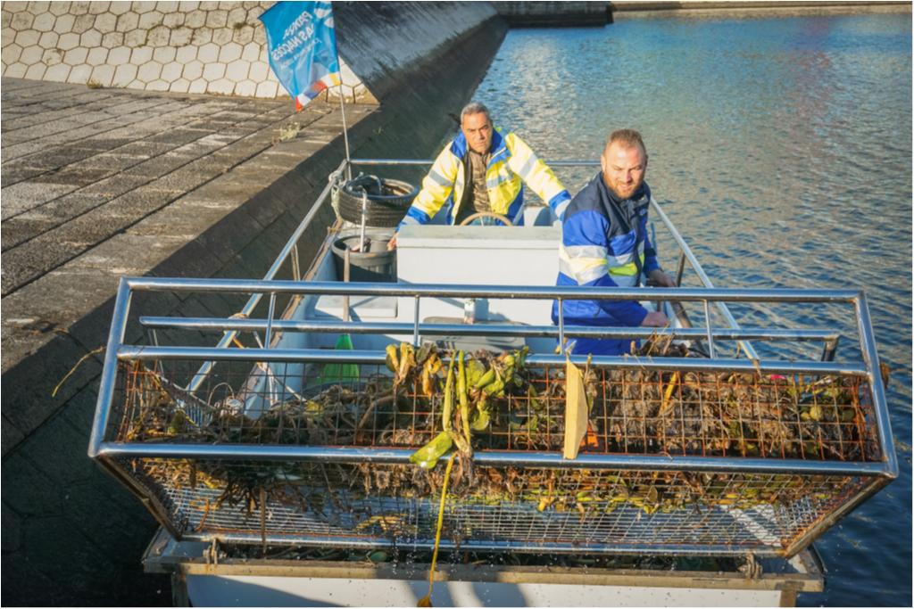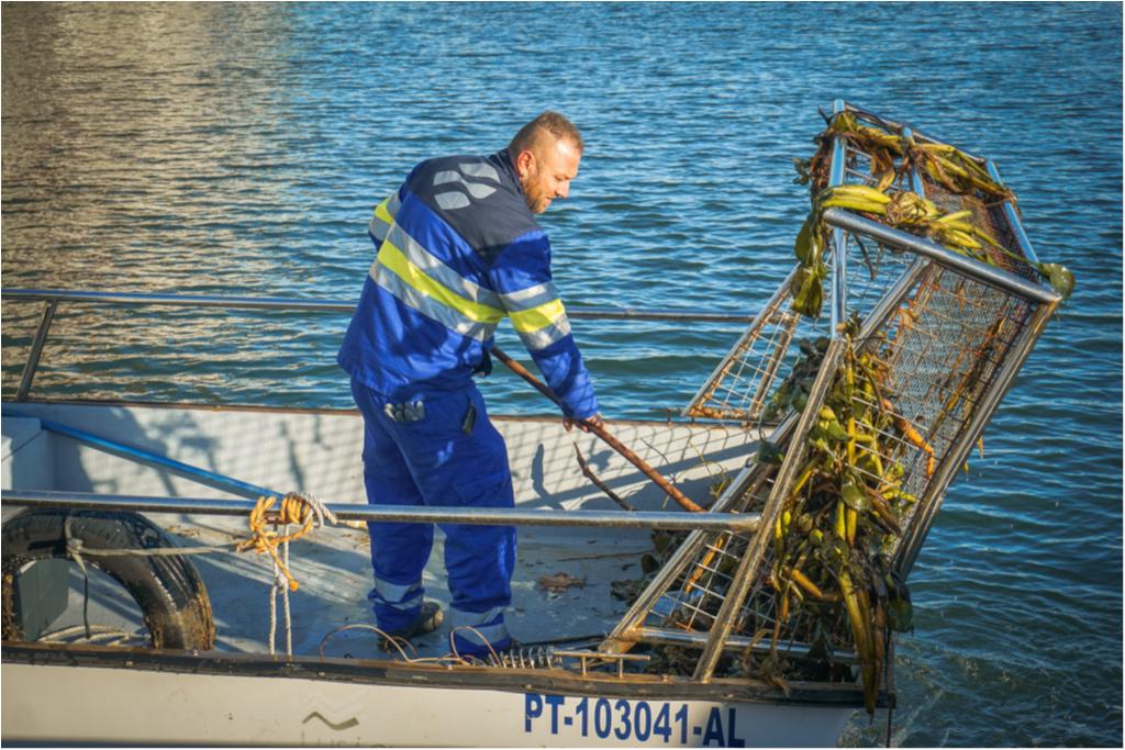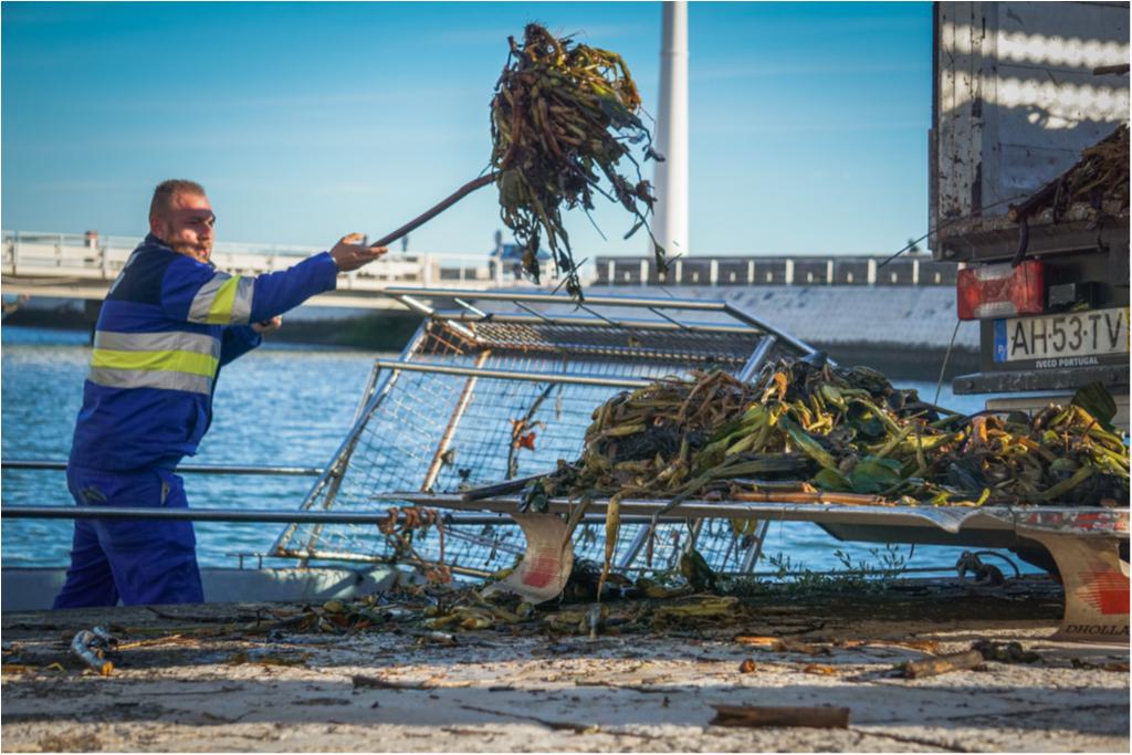 As equipas de Gestão Urbana da JFPN realizaram hoje mais uma ação de limpeza do plano de água da Doca.