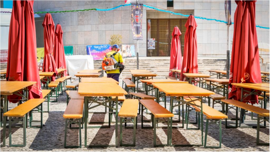 Reforço de limpeza no espaço do Arraial