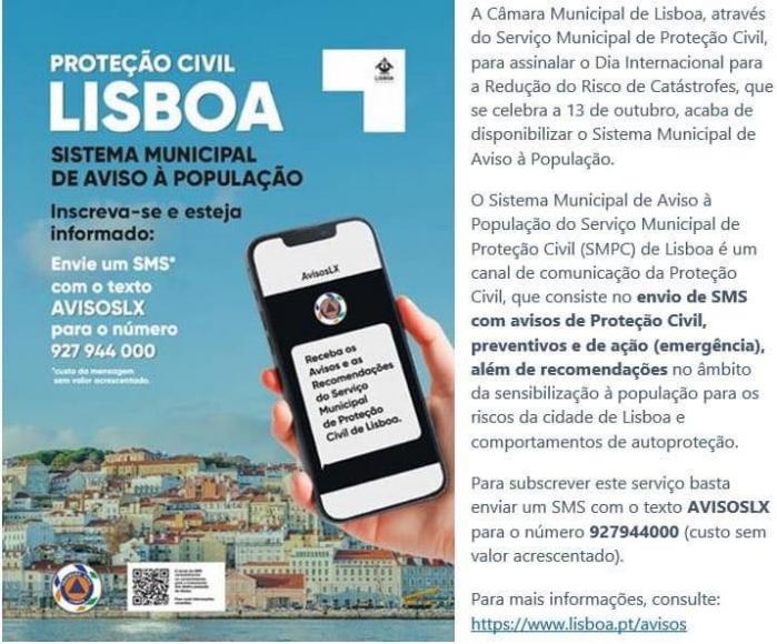 O IPMA emitiu avisos amarelo e laranja para #Lisboa face à previsão de chuva e vento forte, que podem ser acompanhados de trovoada, a partir das 12 horas desta terça-feira, dia 15 de outubro, até às 21h. O período mais crítico está previsto entre as 15h e as 18h, quando a área de Lisboa entra em Aviso Laranja. Como medida de prevenção solicitamos a colaboração e a adoção de medidas de autoproteção e comportamentos adequados, nomeadamente: Não estacionar debaixo de árvores e outras estruturas instáveis; Garantir a desobstrução dos sistemas de escoamento das águas pluviais e retirada de materiais que possam ser arrastados ou criem obstáculos ao livre escoamento das águas; Garantir uma adequada fixação de estruturas soltas, nomeadamente andaimes, placards e outras estruturas suspensas - prevenindo o seu desprendimento e queda na via pública; Limpar e desobstruir ralos e canais de drenagem de quintais, varandas, caves e garagens; Rever sistemas de bombagem; Limpar algerozes e caleiras; Não atravessar zonas inundadas, de modo a precaver o arrastamento de pessoas ou viaturas para buracos no pavimento ou caixas de esgoto abertas; Ter um cuidado especial ao circular junto das zonas ribeirinhas mais vulneráveis a galgamentos, evitando se possível a circulação e permanência nestes locais; Não praticar atividades relacionadas com o rio, entre eles pesca desportiva, desportos náuticos e passeios à beira-mar, evitando ainda o estacionamento de veículos muito próximos da zona ribeirinha, junto de árvores ou zonas instáveis; Adotar uma condução defensiva, reduzir a velocidade e ter especial cuidado com a possível formação de lençóis de água nas vias; Se tiver de passar por uma poça de água faça-o devagar; poças de água podem esconder buracos; Dê apoio a pessoas cuja mobilidade ou capacidade de perceção e reação sejam mais limitadas.