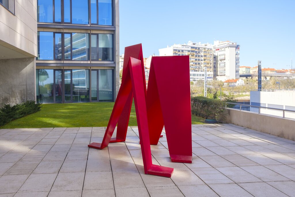 Escultura em chapa de alumínio lacada de vermelho. Esta peça corresponde a uma das propostas vencedoras do ‘Concurso Nacional de Escultura ART’S’.