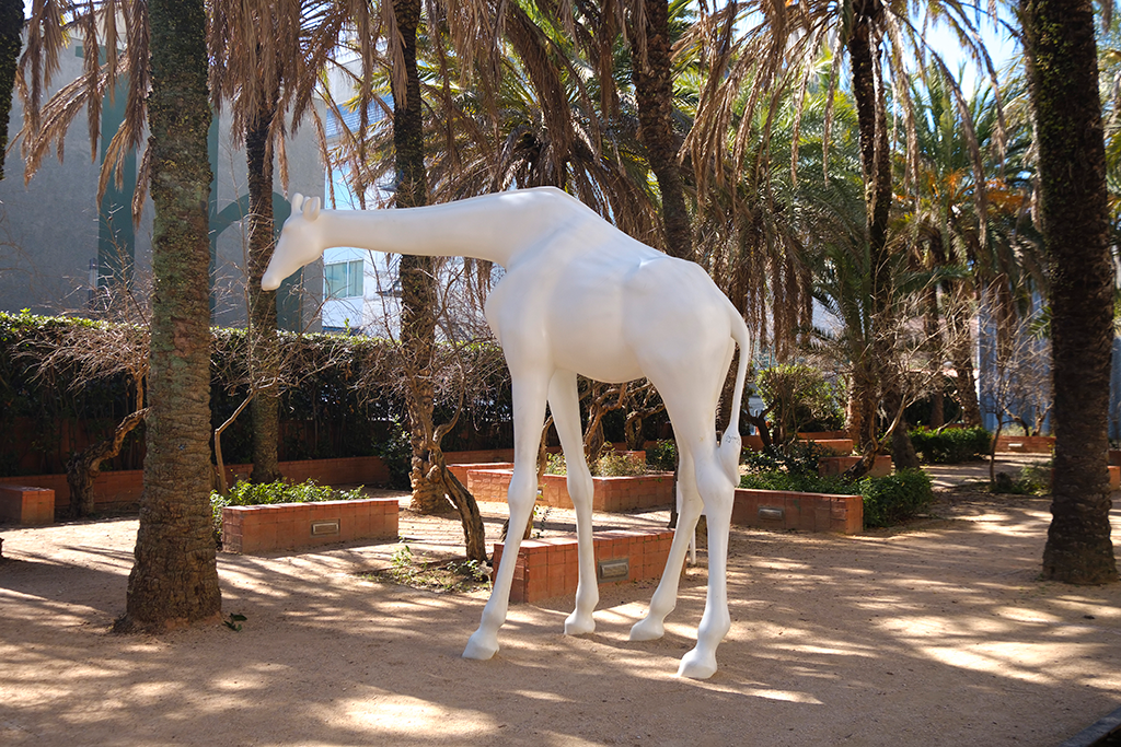 Objeto de culto e de fascínio dos visitantes, a Girafa (ao espelho) - à escala natural, pintada de uma cor neutra, quase branca - é a marca da identidade dos Jardins de Ulisses, onde se encontra, ou até, do seu segredo. A presença do espelho materializa o seu sentido metafórico global.