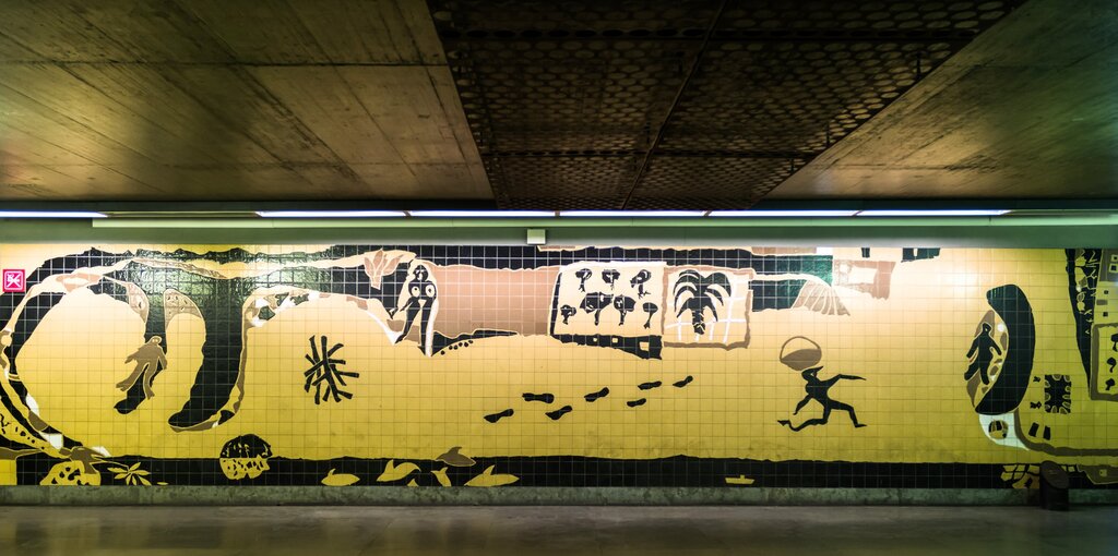 A estação de metro do Oriente,estação terminal da Linha Vermelha,inaugurada em 19 de Maio de 1998,tem projecto do arq. Sanchez Jorge e intervenções plásticas de 11 artistas representando os 5 continentes,que seguiram o cunho universalista do tema central da Expo'98-Os Oceanos.Joaquim Rodrigo (Portugal) contribuiu com o painel de azulejos "Praia do Vau",que sendo a sua derradeira obra,deixou indicações expressas para que fosse Querubim Lapa a transpô-lo para azulejo.