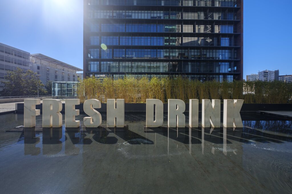 Escultura em mármore branco. Esta peça corresponde a uma das propostas vencedoras do ‘Concurso Nacional de Escultura ART’S’. Foi concebida para o centro de um espelho de água. Pesa seis toneladas e tem mais de dez metros de comprimento.